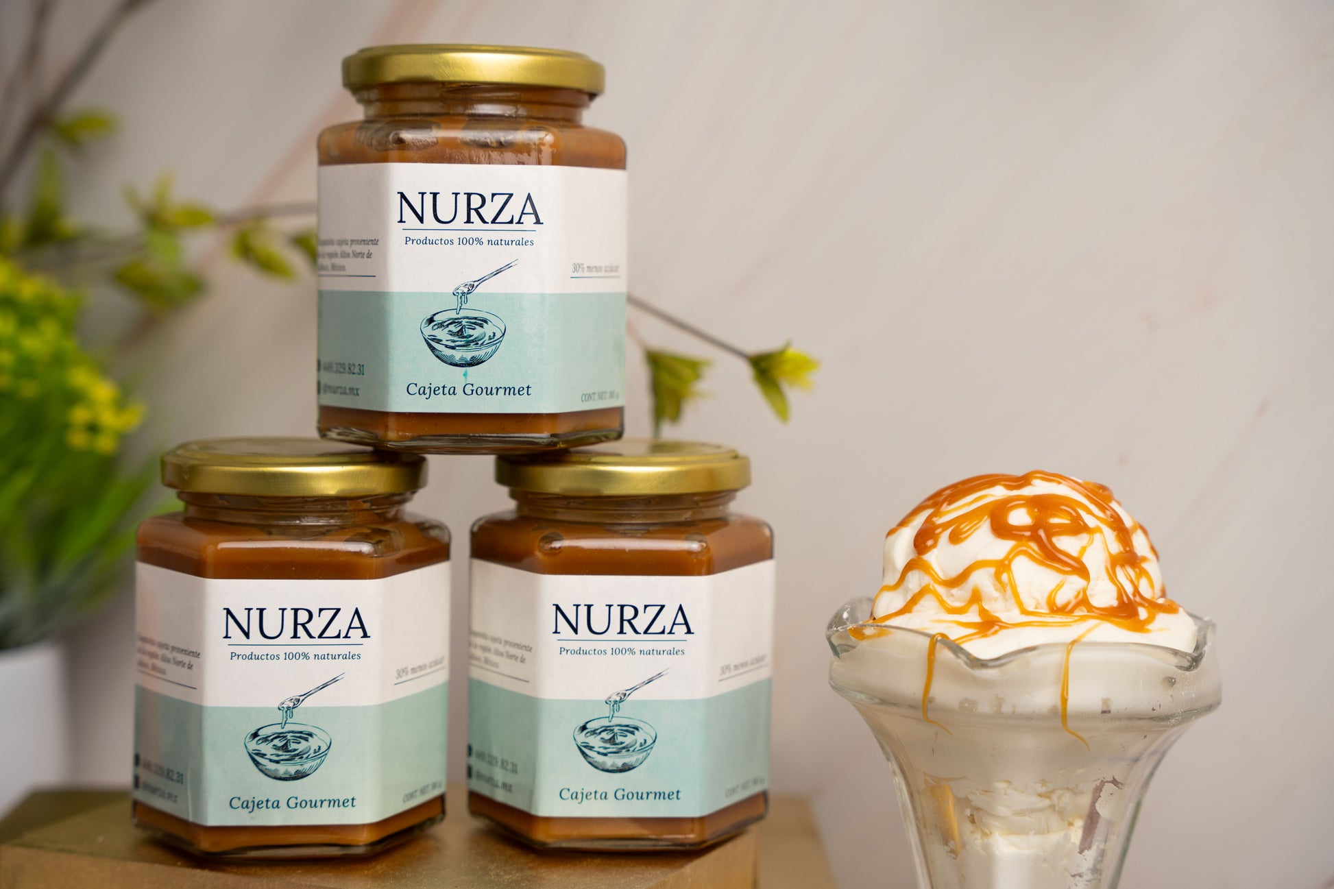 Proveniente de los Altos Norte de Jalisco, el dulce de leche gourmet NURZA está elaborado con leche de vaca 100% natural. Nuestra fórmula contiene 30% menos azúcar, siendo más saludable para toda la familia.